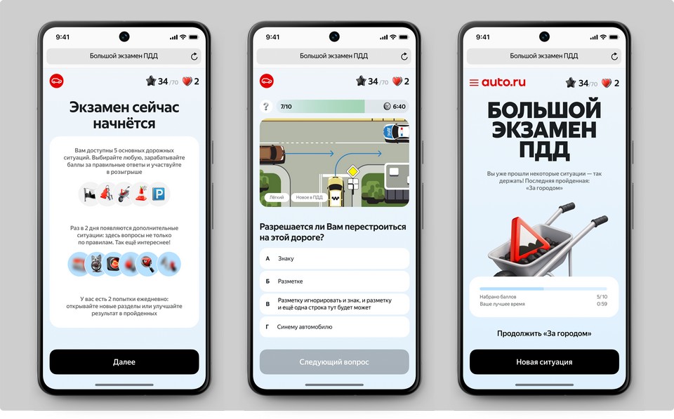 «Мы развиваем Большой экзамен ПДД Авто.ру, чтобы движение на дорогах становилось более безопасным и комфортным для всех. Игровой формат помогает выявить пробелы в знаниях правил и сложных дорожных ситуаций, а также разобраться в вопросах, связанных с владением и эксплуатацией машины, которые не встречаются в автошколе».