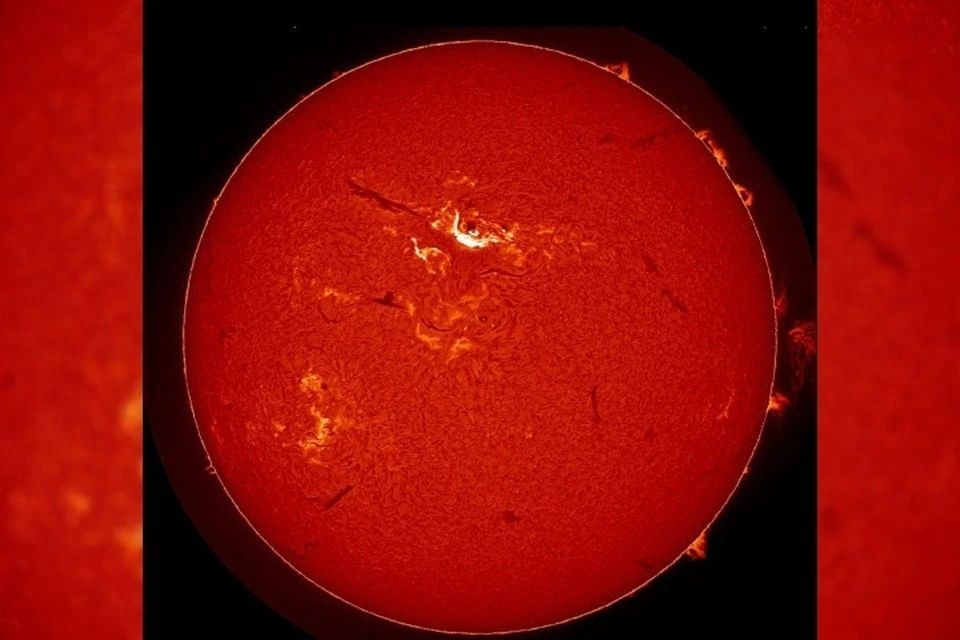 Масштабы явления впечатляют: размеры темного пятна на Солнце превышают диаметр Земли, а высокая температура вызвала исключительно яркое свечение.