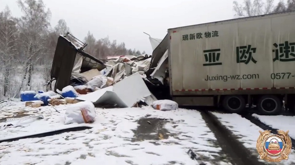 По имеющемся сведениям, произошло столкновение четырех большегрузов. В результате аварии два водителя погибли, два получили различные травмы.