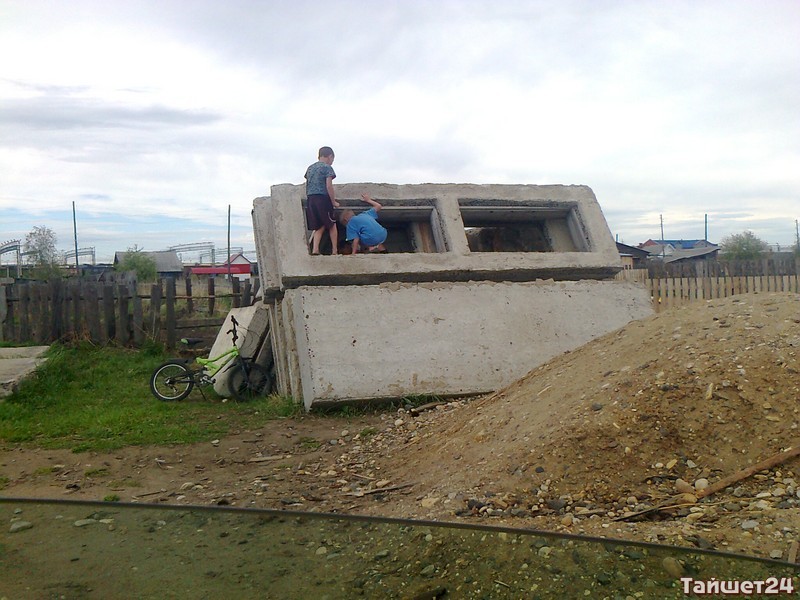 У нас на улице Совхозной в Новом Акульшете установили детскую площадку. Ребятишки со всей деревни собираются там и играют. Через дорогу расположены магазин и СТО, владелец которых рядом с площадкой складировал бетонные плиты и кучу то ли гравия, то ли глины.