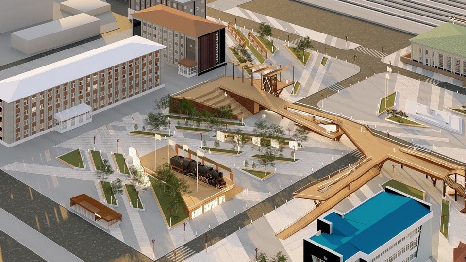 - Привокзальная площадь — главные ворота города. Здесь появятся удобные транзитные маршруты для пассажиров, масштабная площадь для проведения парадов (например, в День Победы) и уютные островки отдыха со скамейками.