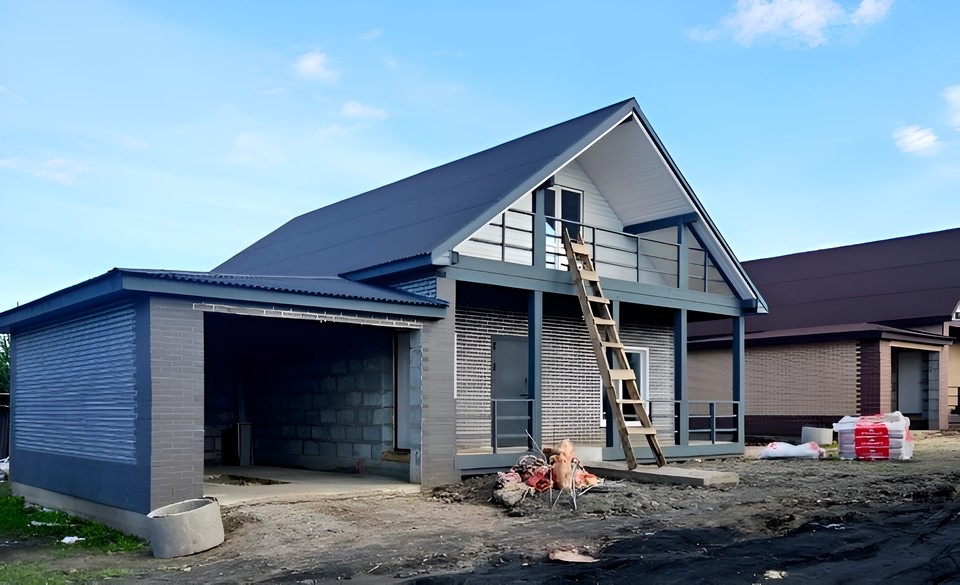 Дом построен из полистиролбетона — современного материала с отличной тепло- и звукоизоляцией, экологичного и долговечного.