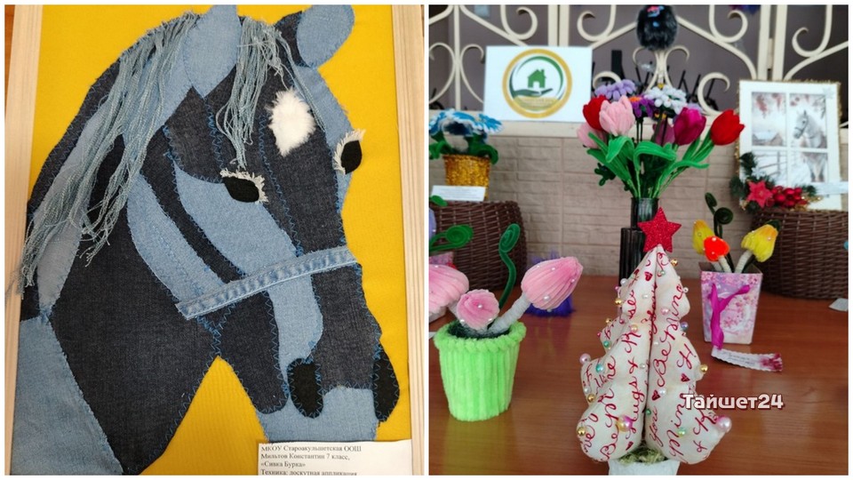 Порадовали посетителей и работы учащихся Староакульшетской школы. Украшением экспозиции стала работа ученика 7 класса Константина Мильтова «Сивка-Бурка», выполненная в технике лоскутного шитья. Большой интерес вызвала композиция «Казачка Вера» Назара Дмитриченко. Деревенский колодезь, деревянные ведра с коромыслом и розовощёкая казачка в миниатюре надолго приковывали взгляд.