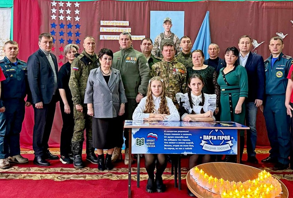 Коллектив Шелаевской школы и гости стали участниками торжественной церемонии открытия «Парты Героя», посвящённой памяти уроженца села Шелаево Александра Александровича Забиняко. В мероприятии приняли участие глава Тайшетского муниципального образования Александр Кузин, исполняющий обязанности военного комиссара Тайшетского и Чунского округов, участник специальной военной операции Алексей Валерьевич Дмитриченко, ветераны СВО, а также депутаты Алексей Текутьев, Антон Афонин, Александр Стахеев и представитель северных территорий Елена Минаутова.