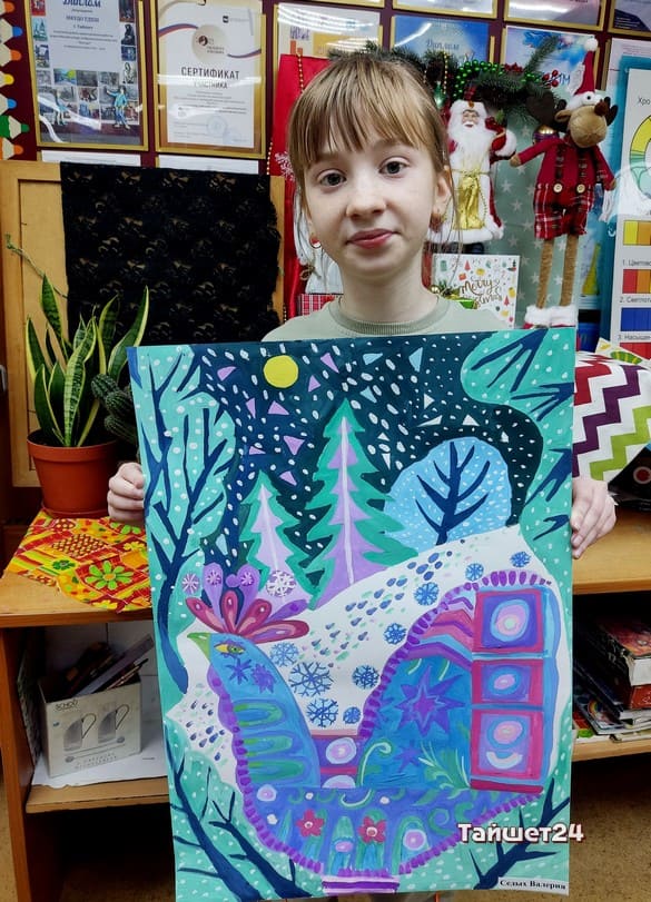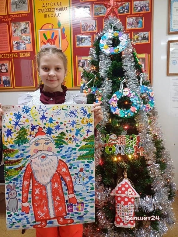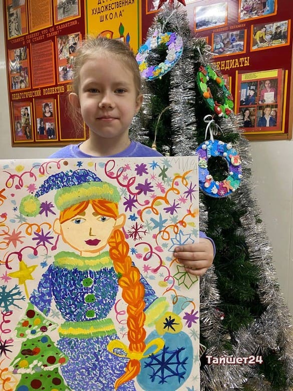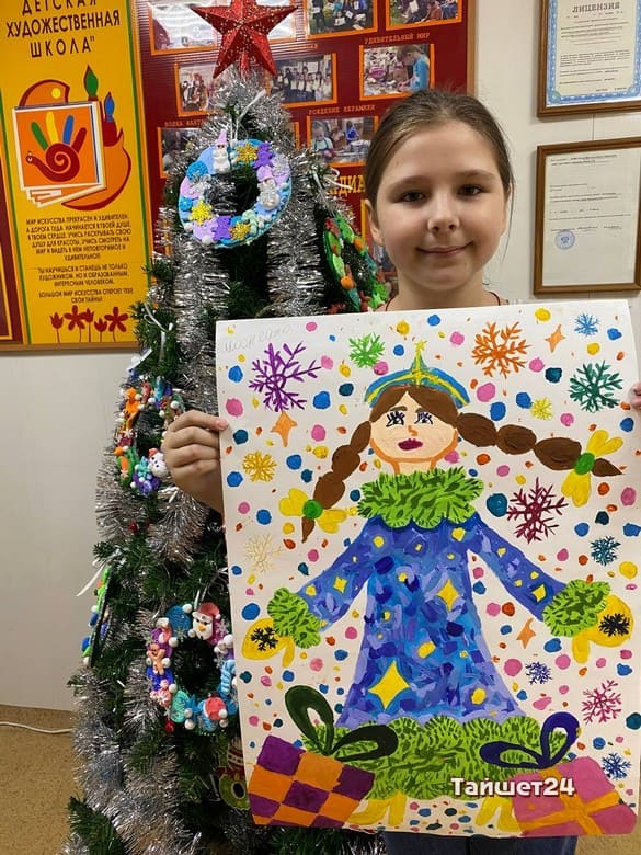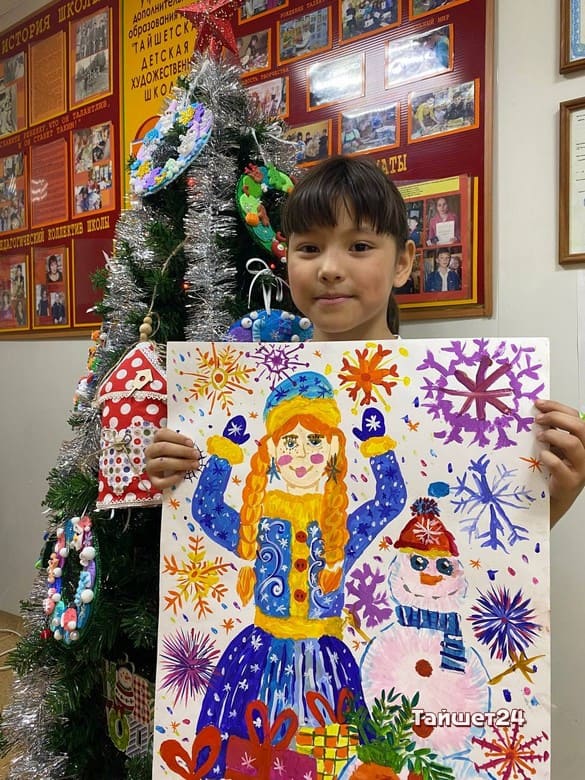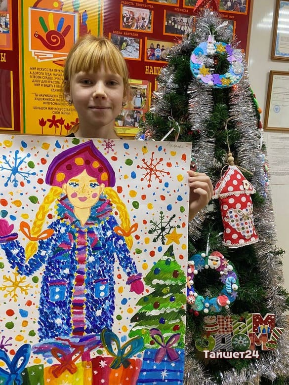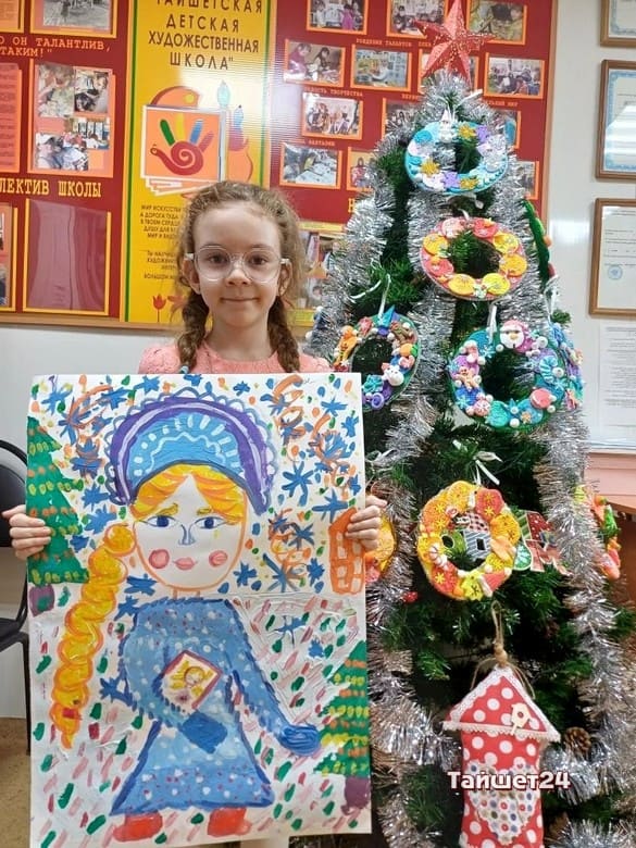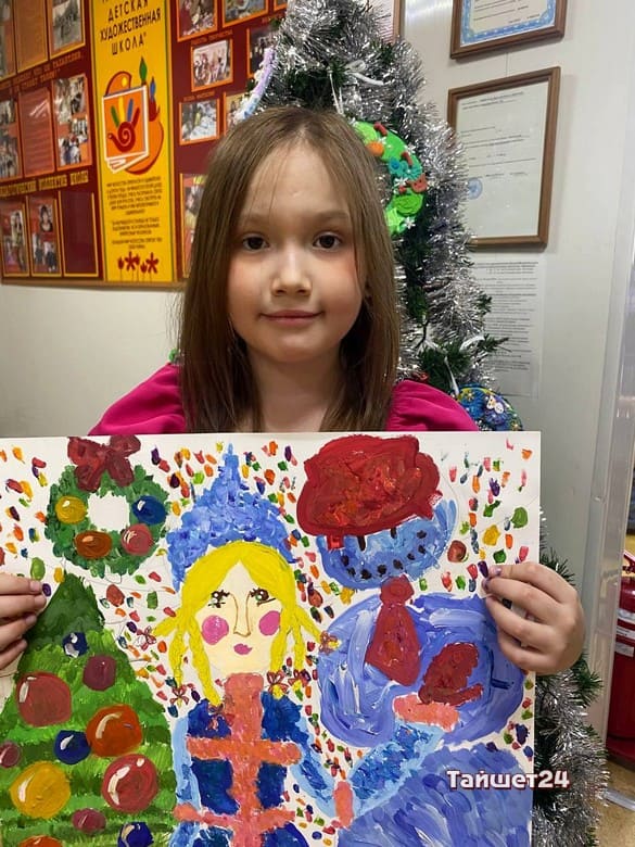 В Тайшетской детской художественной школе прошла праздничная выставка работ первоклассников. На своих рисунках ребята изобразили волшебные новогодние сюжеты: Дед Мороз и Снегурочка в предпраздничных хлопотах развозят подарки, зажигают огни на ёлках, украшают город сверкающим снегом и кружевными снежинками.