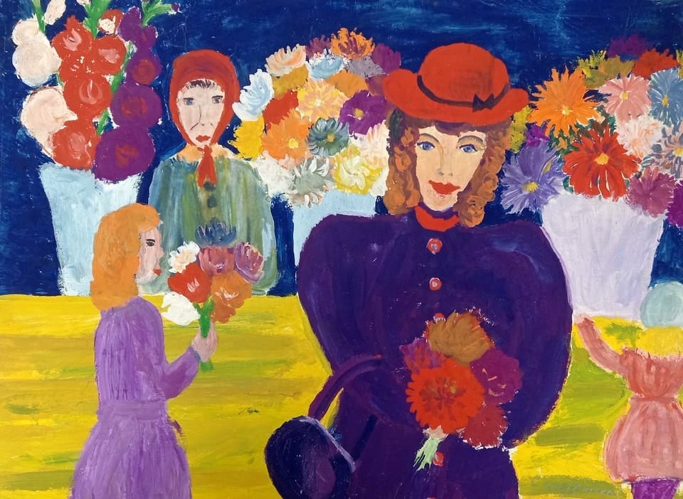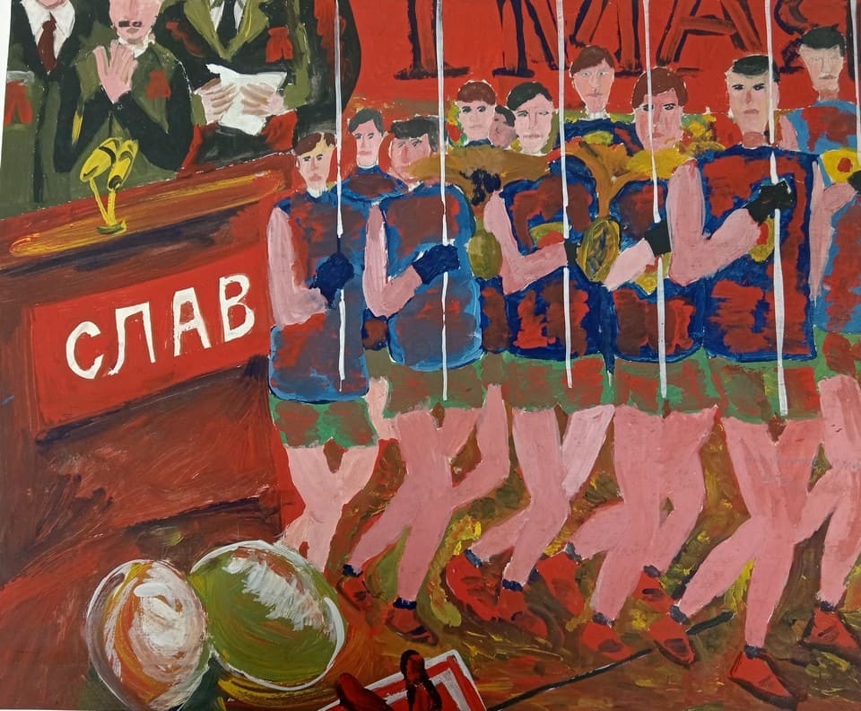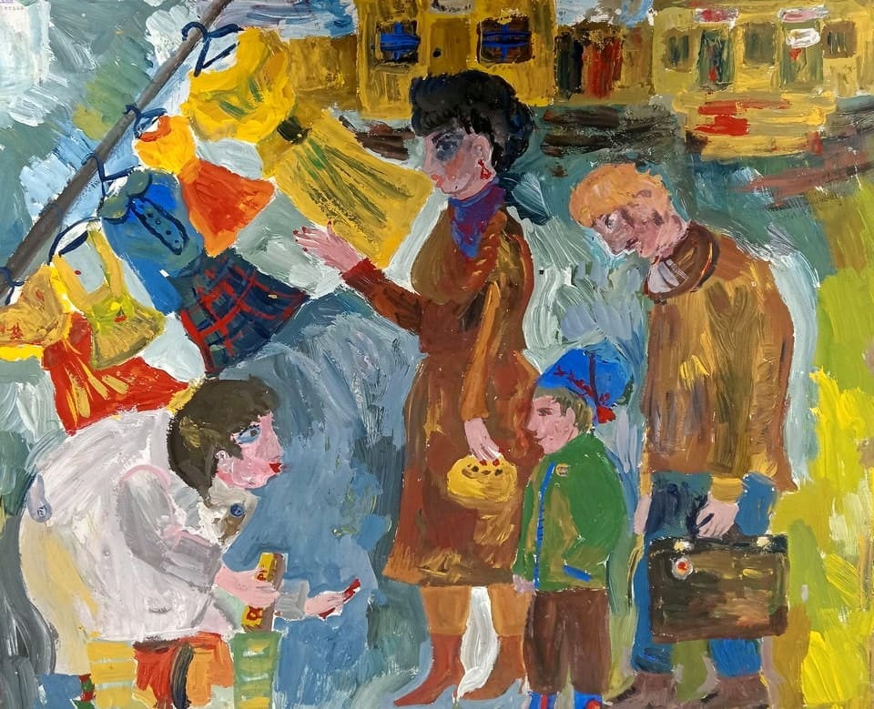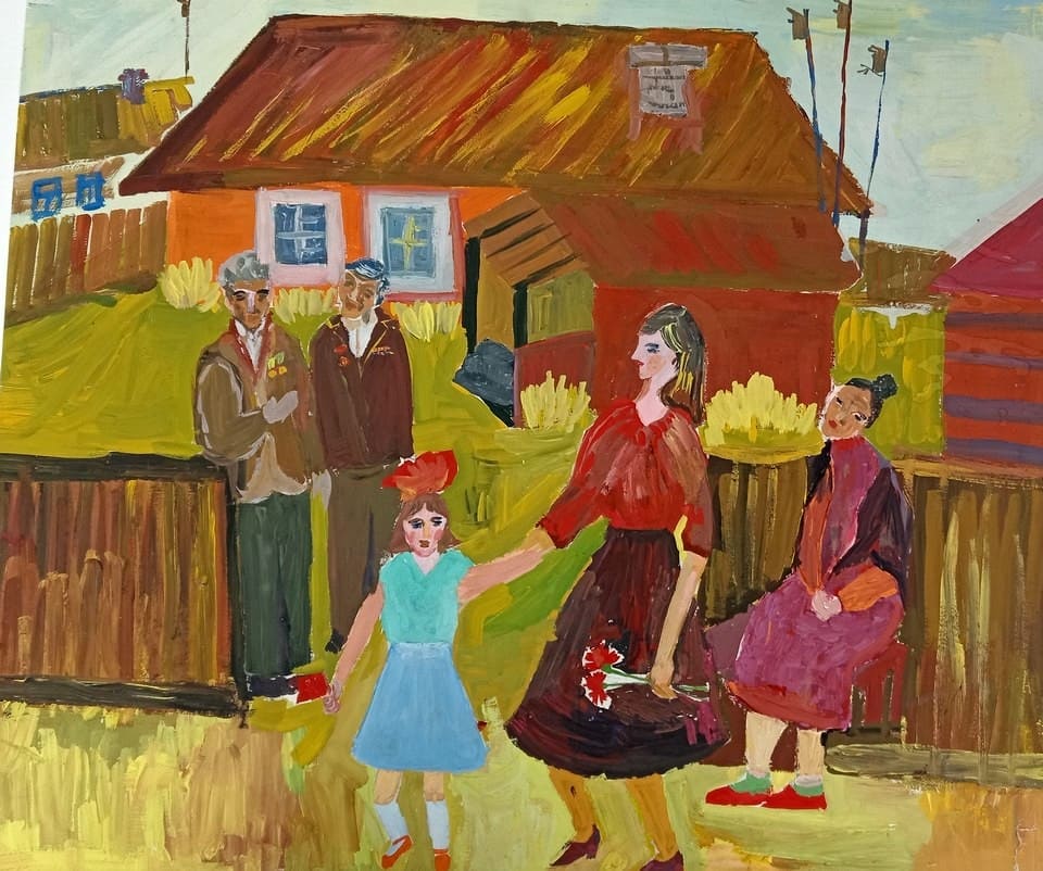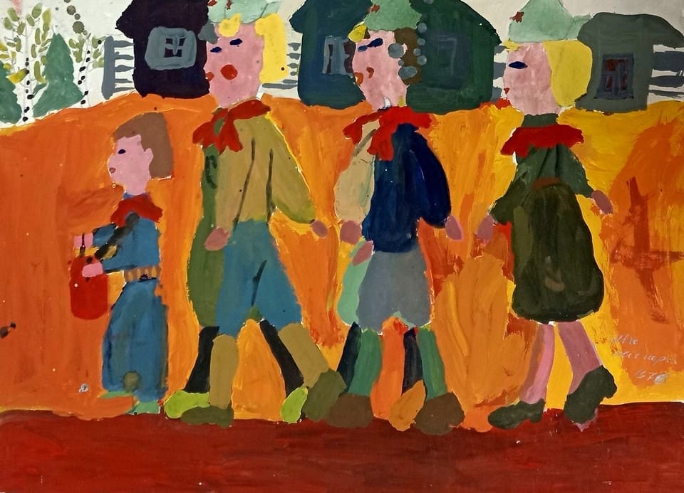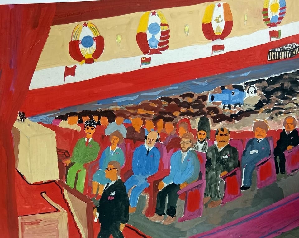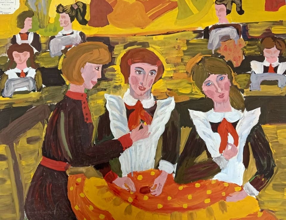 А сегодня мы предлагаем вам перенестись из XXI века в советский период и представляем несколько живописных работ. Эти картины покоряют фейерверком красок, взрывом эмоций, неповторимостью образов — как далёких, так и близких. Здесь вы увидите и заседание партийных деятелей, и пионеров, идущих в строю, и букет для учительницы на 1 сентября, и поездку к бабушке в деревню, и учеников за школьными партами, и прогулки с любимой собакой.