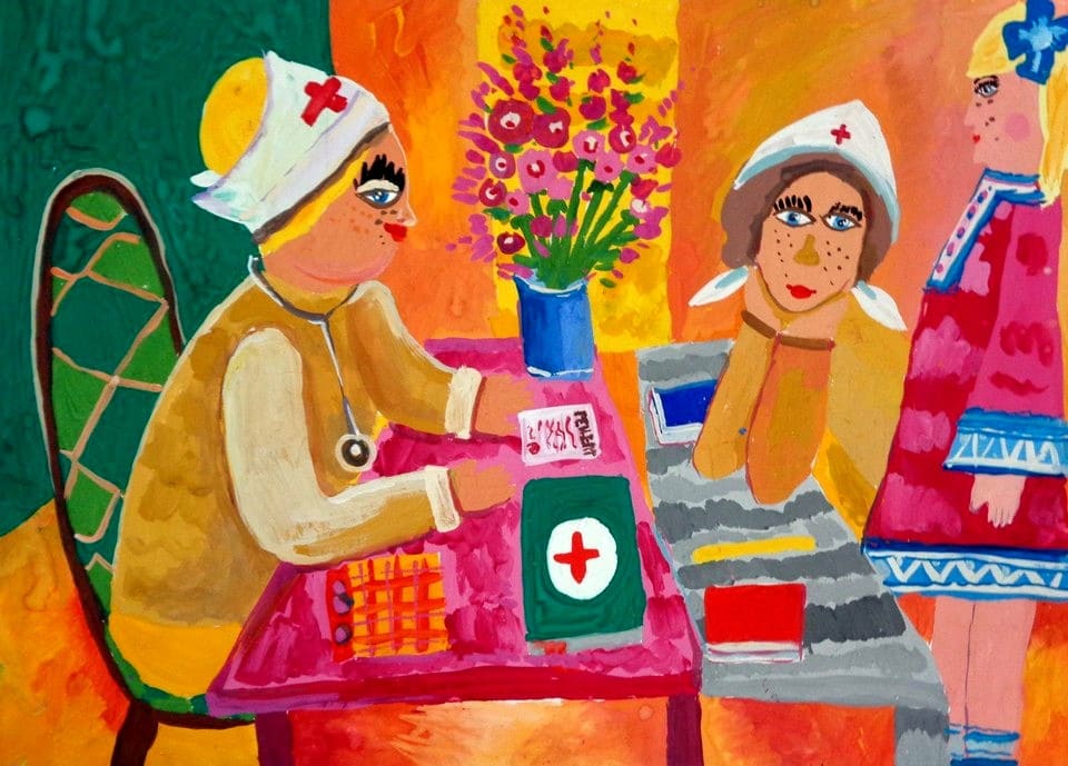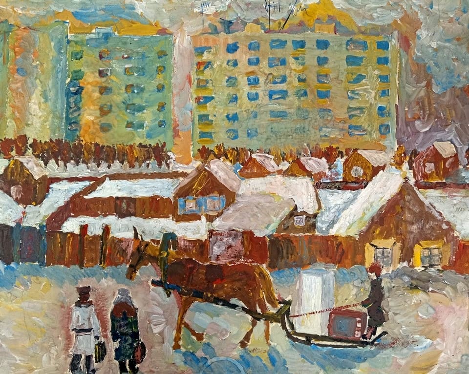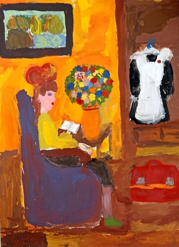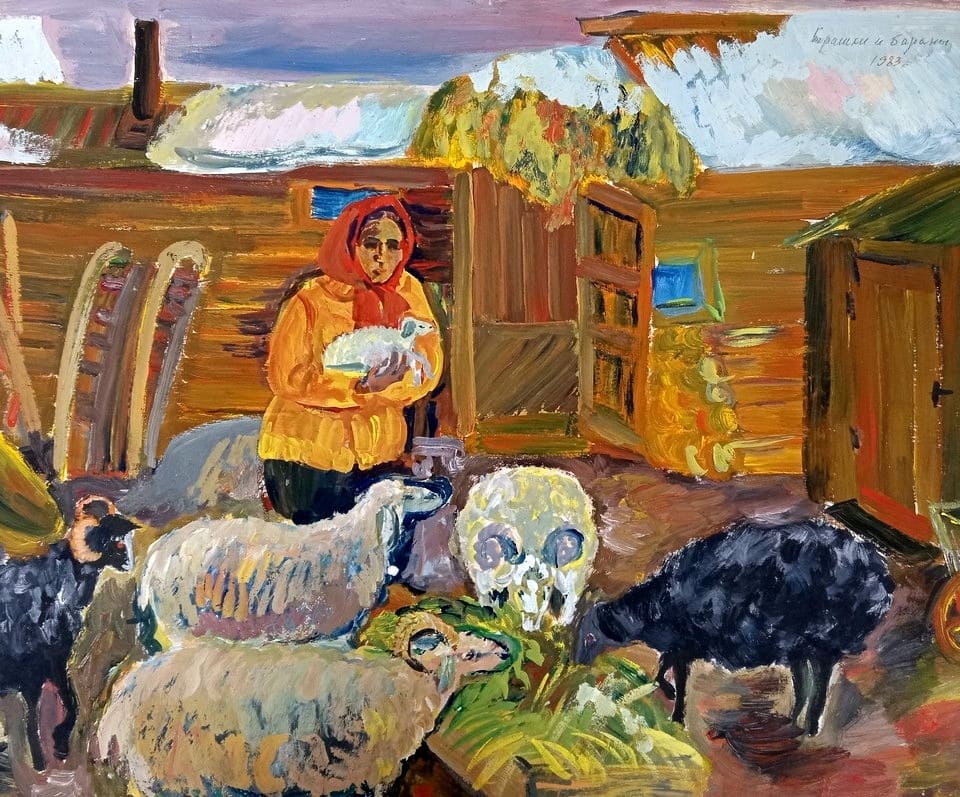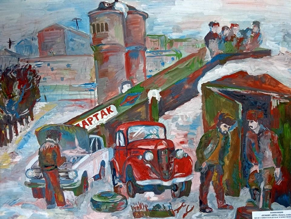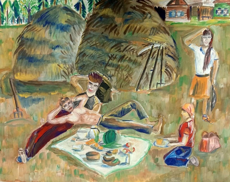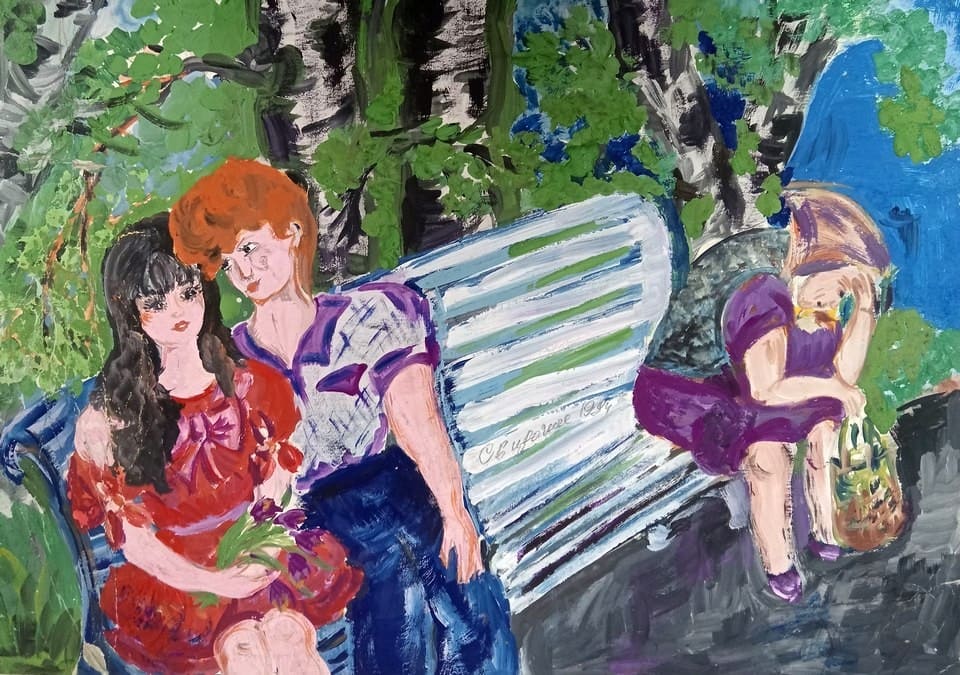 А сегодня мы предлагаем вам перенестись из XXI века в советский период и представляем несколько живописных работ. Эти картины покоряют фейерверком красок, взрывом эмоций, неповторимостью образов — как далёких, так и близких. Здесь вы увидите и заседание партийных деятелей, и пионеров, идущих в строю, и букет для учительницы на 1 сентября, и поездку к бабушке в деревню, и учеников за школьными партами, и прогулки с любимой собакой.
