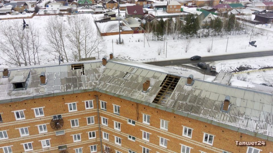 Сильный ветер снёс с домов в Тайшете десятки листов шифера