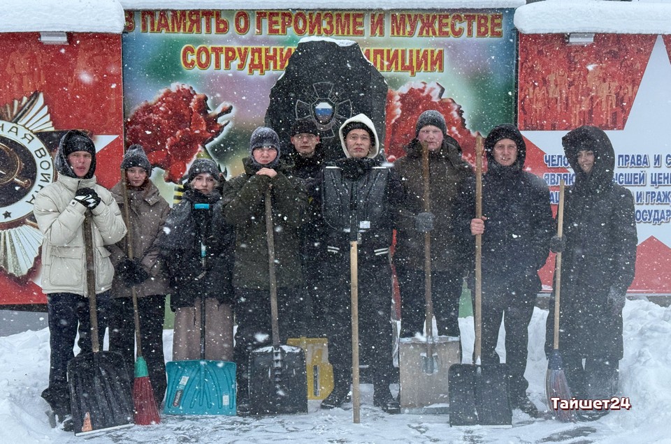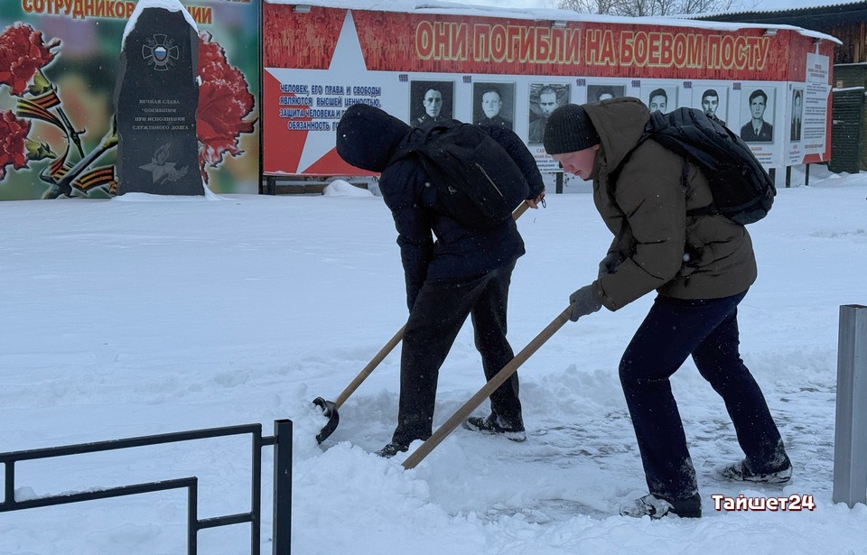 «Снежный десант» тайшетских школьников: волонтёры навели порядок у мемориала