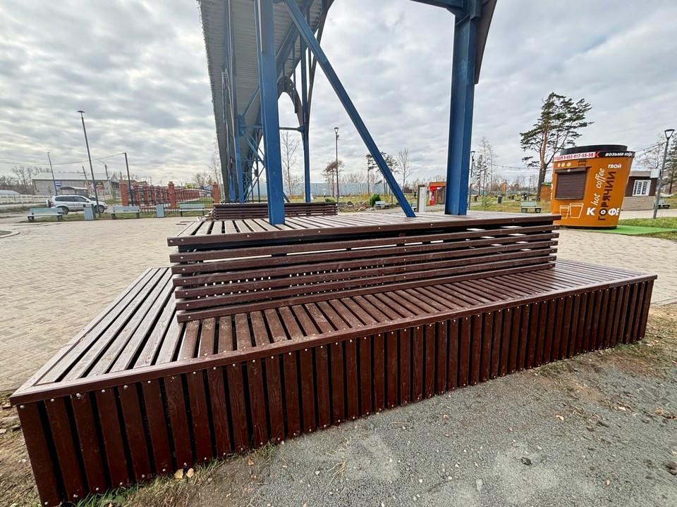 В Тайшете преображается городской парк. Работы идут полным ходом: обновляется фасад, а 12 опор арочного пешеходного моста скоро дополнят уютные деревянные скамейки.