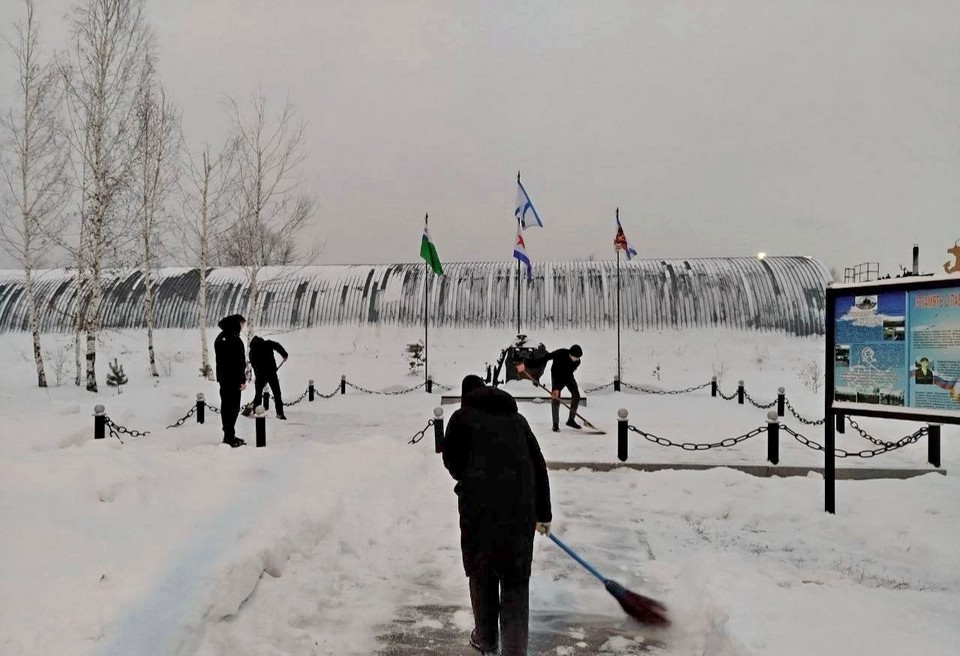Декабрь в этом году щедро одарил Тайшетский округ снегом, и коммунальная техника не всегда успевает справиться с его уборкой. Однако благодаря волонтёрам движения «Первых» памятные и общественные места остаются чистыми и ухоженными.