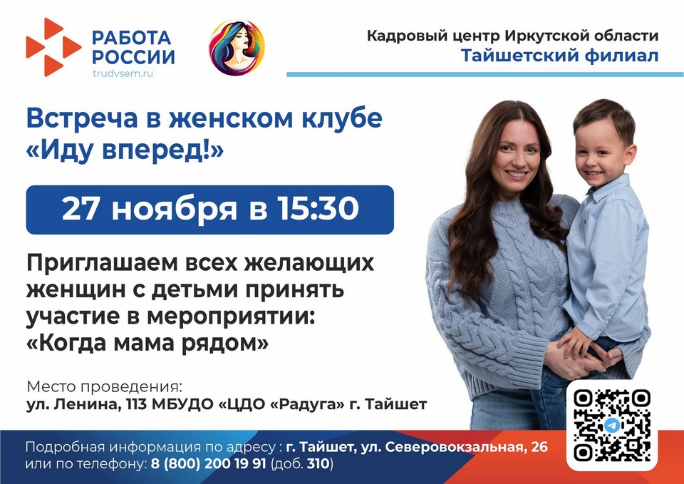 Тайшетский филиал Кадрового центра приглашает 27 ноября женщин с детьми на встречу