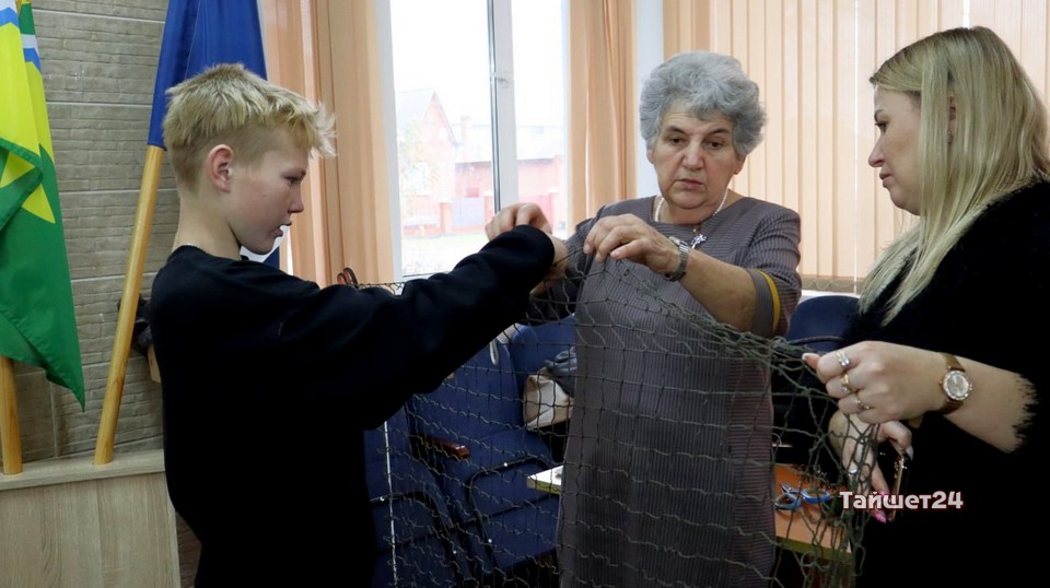 - Волонтёры Тайшетского районного Совета ветеранов: Надежда Дегтярёва, Марина Коренева и Зоя Саламай раскрыли секреты успешного освоения искусства плетения маскировочных сетей.