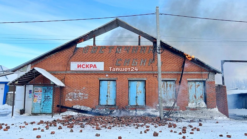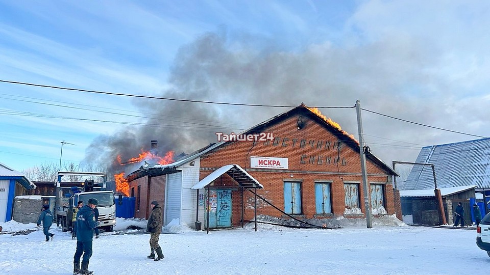 На улице Кирова в Тайшете в эти минуты бушует пожар. Загорелся магазин «Восточная Сибирь» («Искра»), площадь которого составляет 384 квадратных метра.