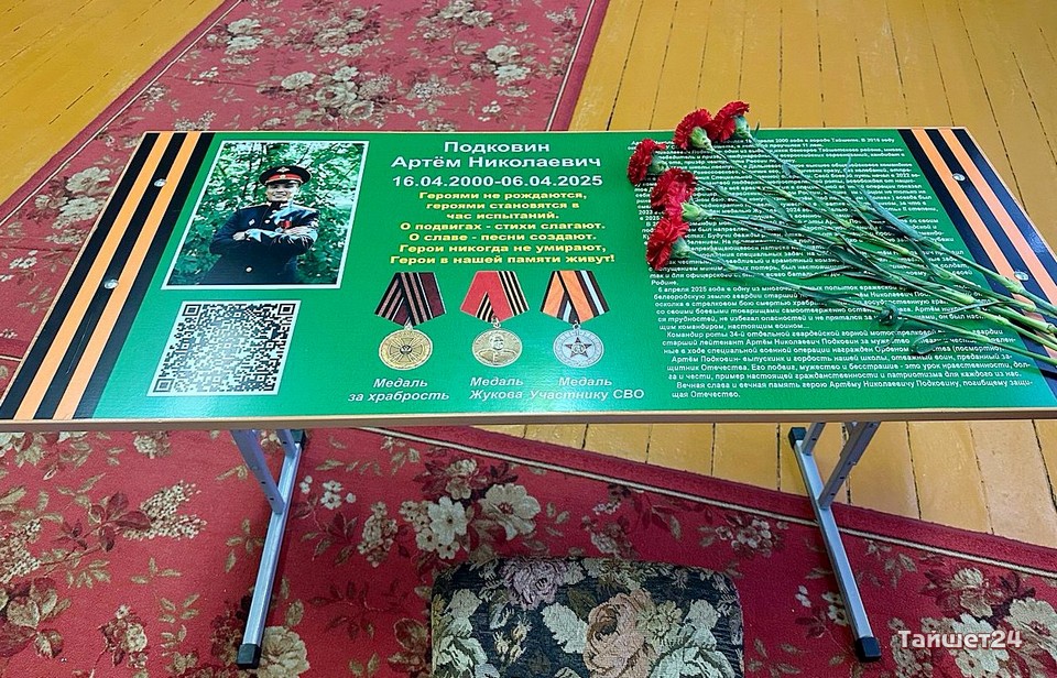 Сегодня в школе №5 Тайшета прошла торжественная церемония открытия Парты Героя имени нашего земляка, бойца специальной военной операции, выпускника Тайшетской школы бокса Артёма Подковина.
