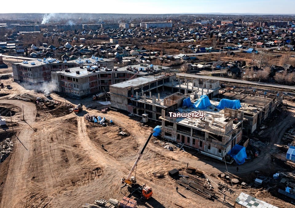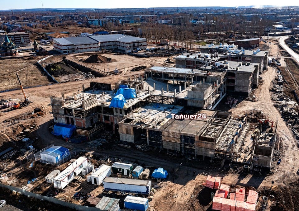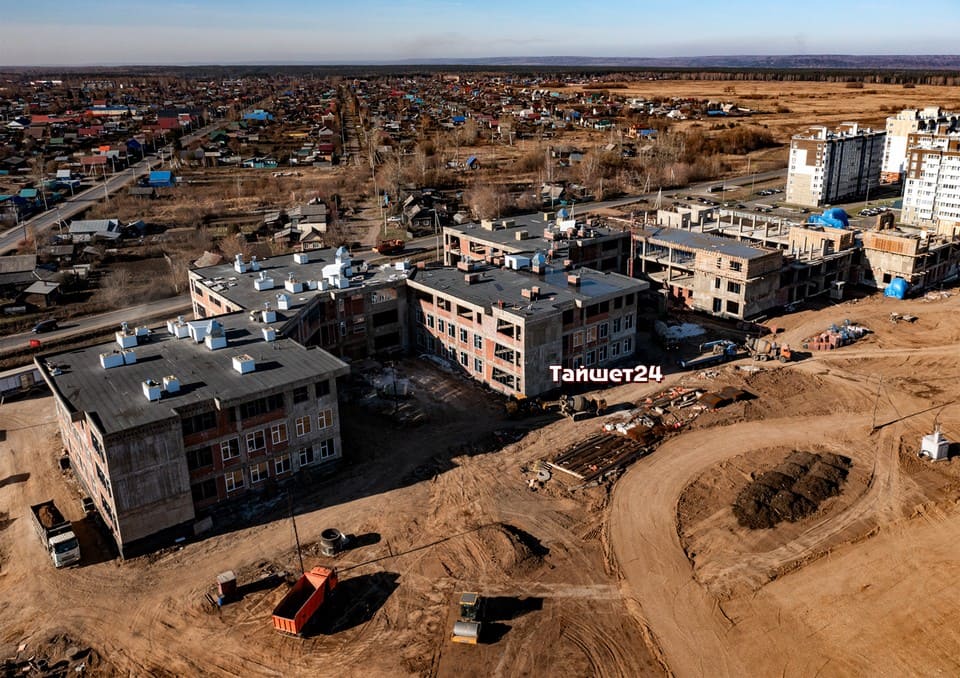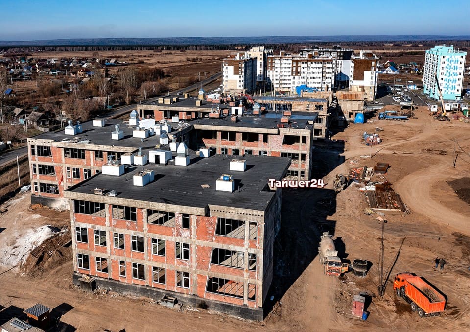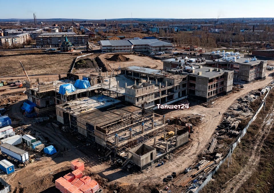 С наступлением тёплых летних дней на строительстве новой школы на 1275 мест в Тайшете развернулись полномасштабные работы. Если в мае только начинали вырисовываться контуры здания, то к осени они стали отчётливо видны.