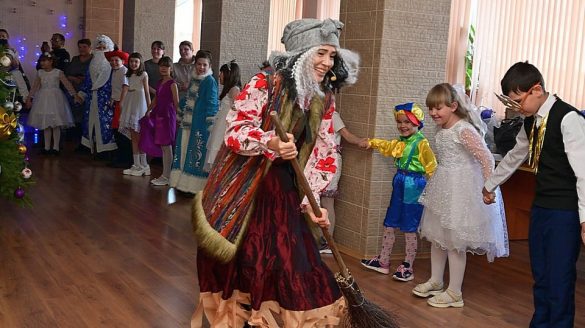 Праздник начался со сказочного спектакля и завершился новогодними играми и вручением сладких подарков.